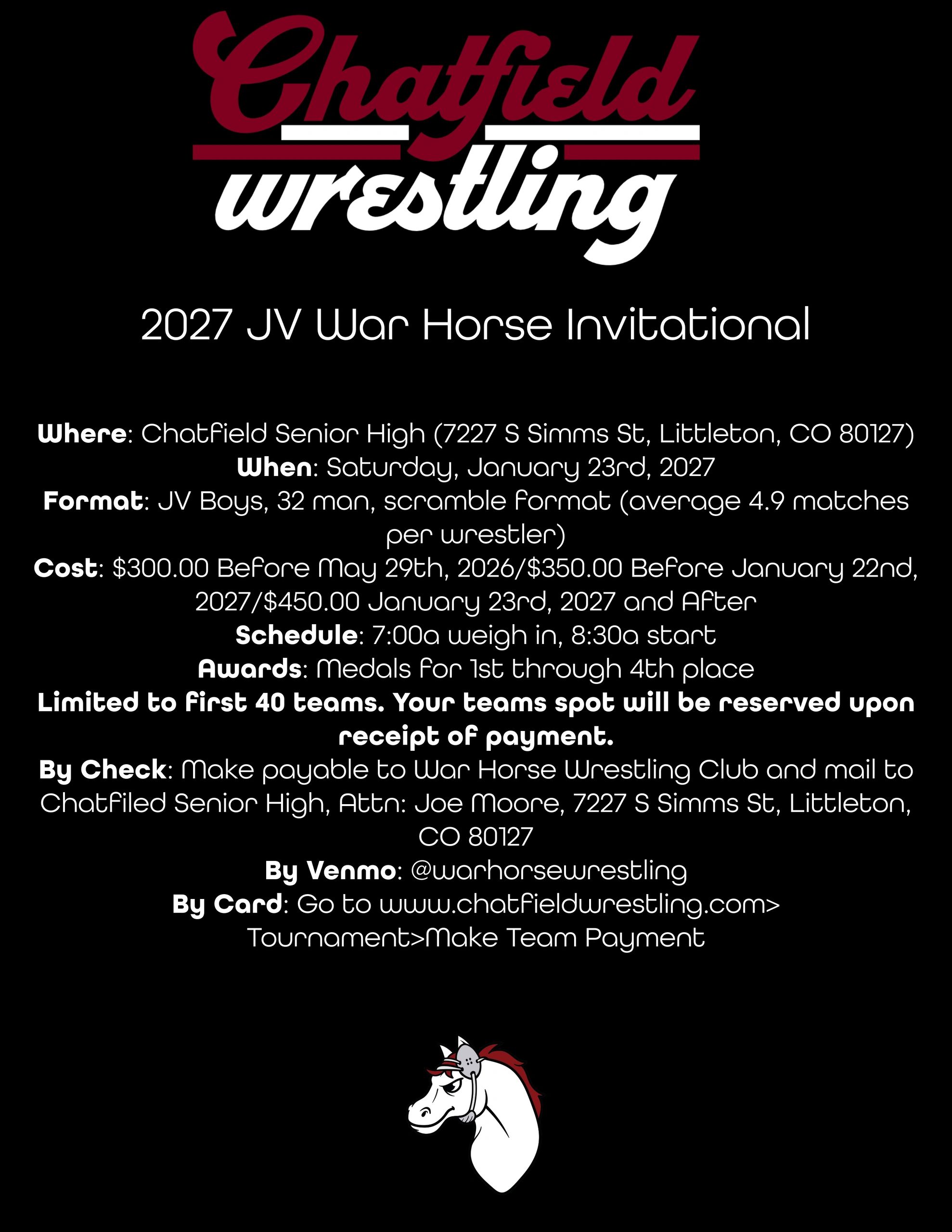 Secure your teams spot in the 2027 JV War Horse Invitational by clicking the action button below and making payment.