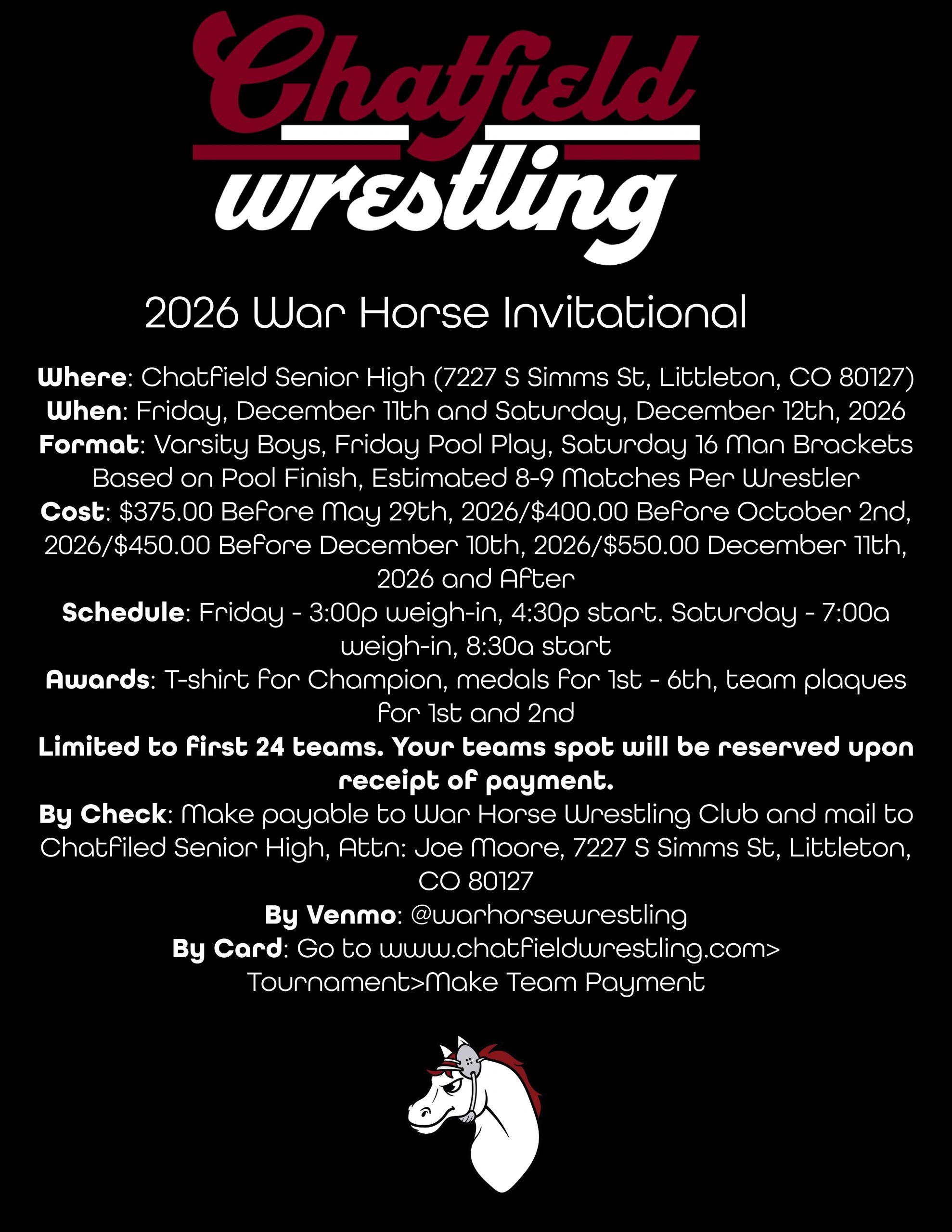 Secure your teams spot in the 2026 War Horse Invitational by clicking the action button below and making payment.